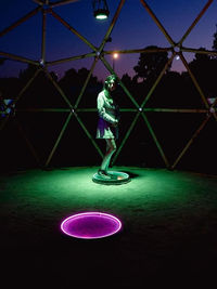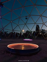 Nous proposons aussi une version en intérieur sans dôme. Dans ce cas, l'espace circulaire est défini par 8 tubes de néon lumineux.